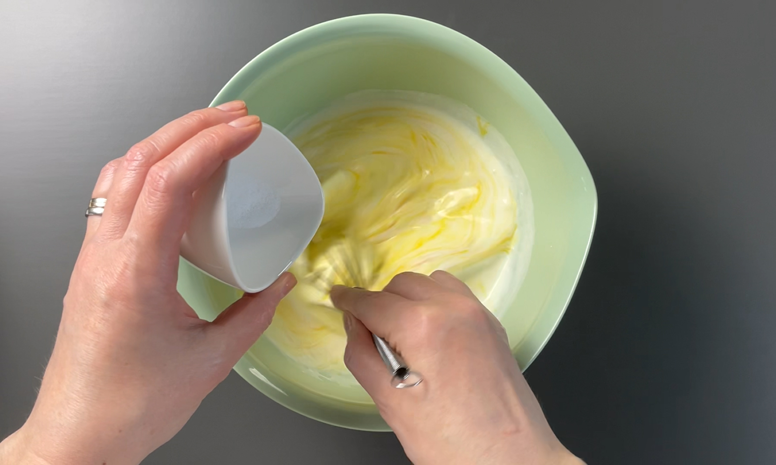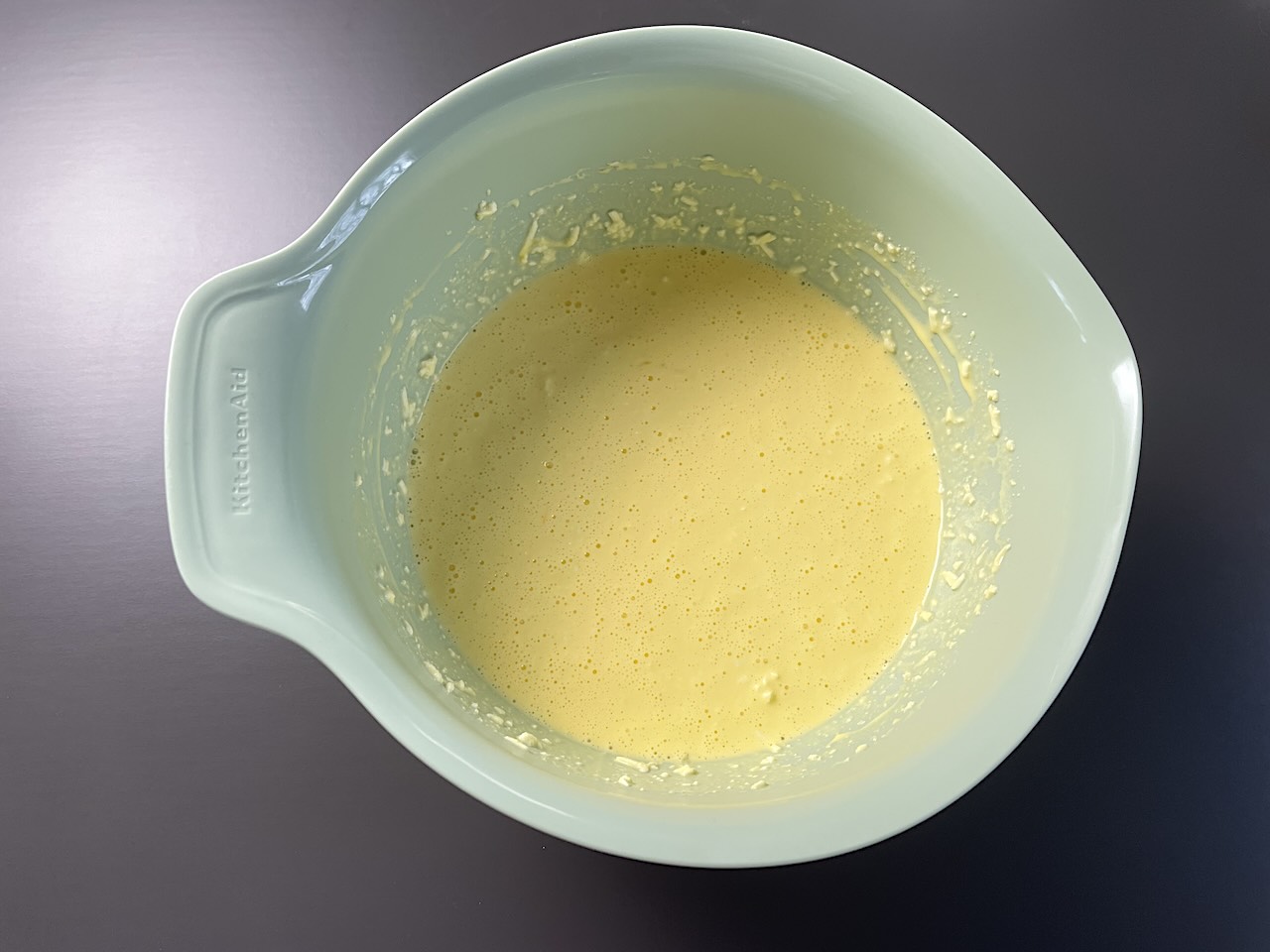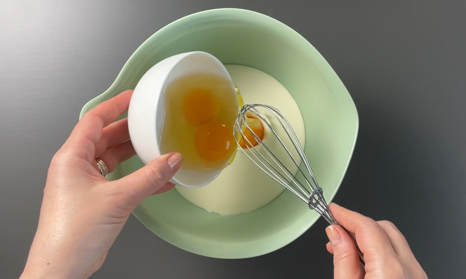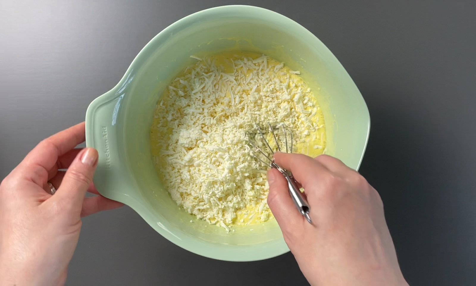 In a mixing bowl, whisk together the eggs, cream, grated cheese, and salt, until well combined.