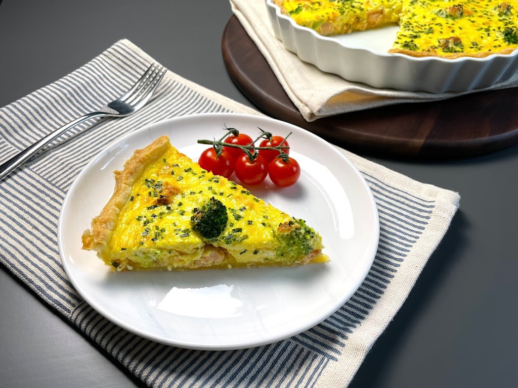 Salmon and Broccoli Quiche is a symphony of flavors, from the rich, flaky pastry to the succulent salmon and earthy broccoli, all bound together by creamy eggs and decadent cream. Whether served warm for brunch or chilled for a light lunch, this quiche is sure to impress with its elegant presentation and irresistible taste. Elevate your dining experience with this delightful combination of wholesome ingredients, crafted into a dish that’s as beautiful as it is delicious.