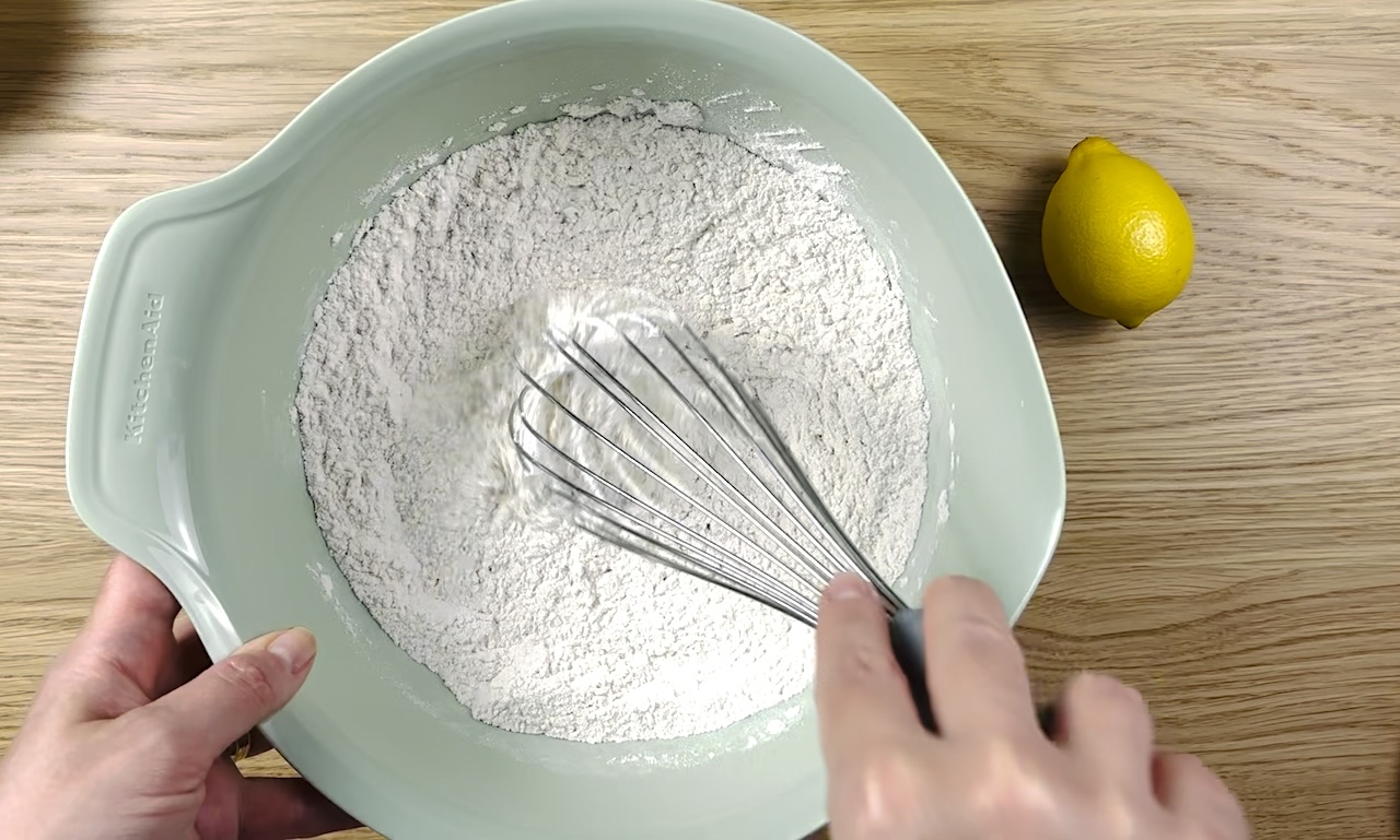 To prepare the crust, in a large mixing bowl combine the flour, granulated sugar, salt, and lemon zest.