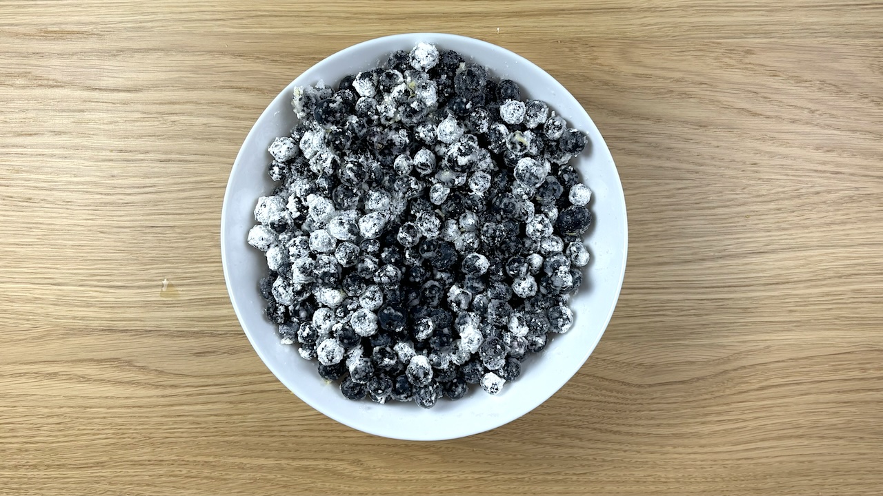 To prepare the filling, combine in a large bowl the blueberries, corn starch, granulated sugar, lemon juice, and lemon zest. Mix gently until the blueberries are evenly coated.