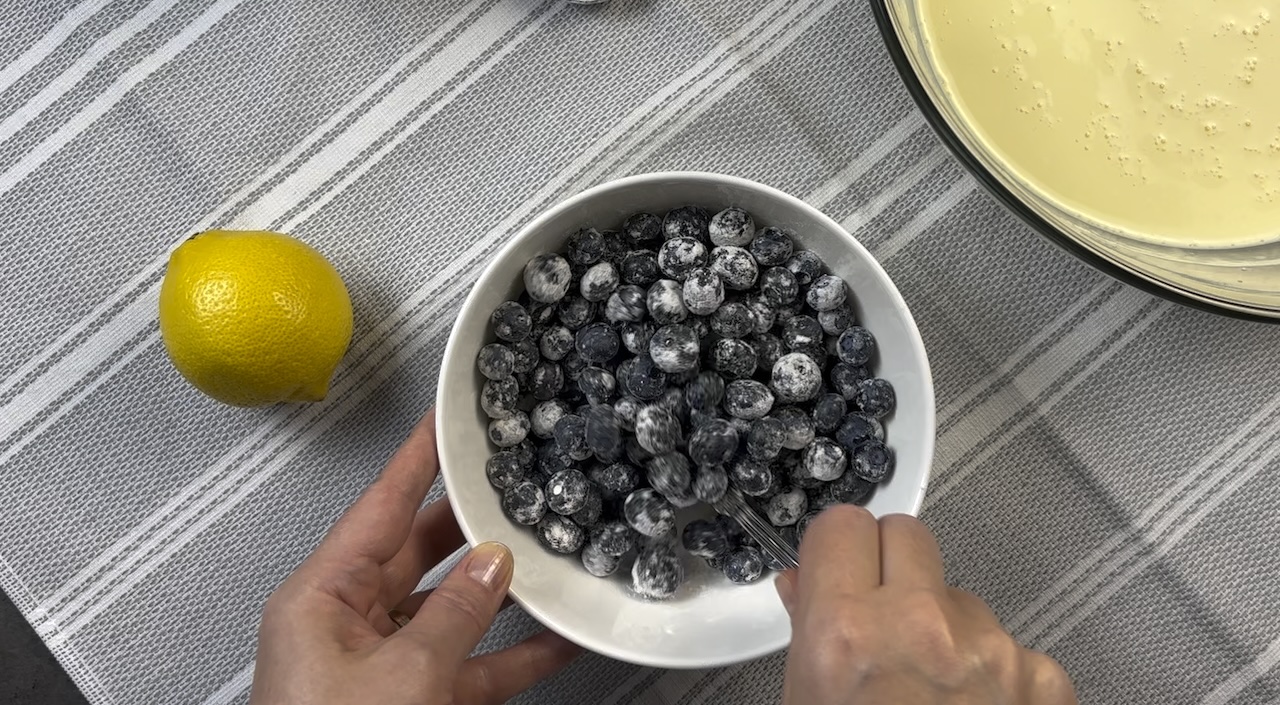 Note: Before adding the blueberries, toss them with 1 tablespoon of flour.