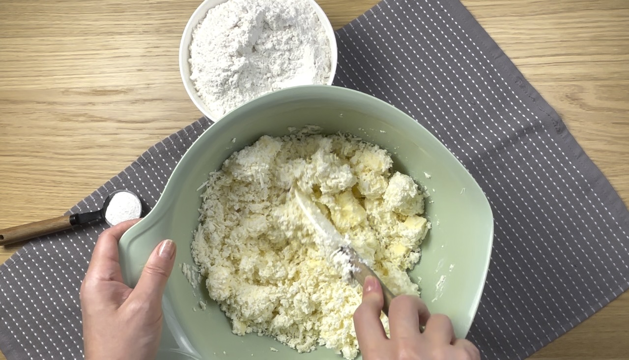 In a large mixing bowl, grate the feta cheese. Add the cottage cheese, sour cream, and butter. Mix until just combined.