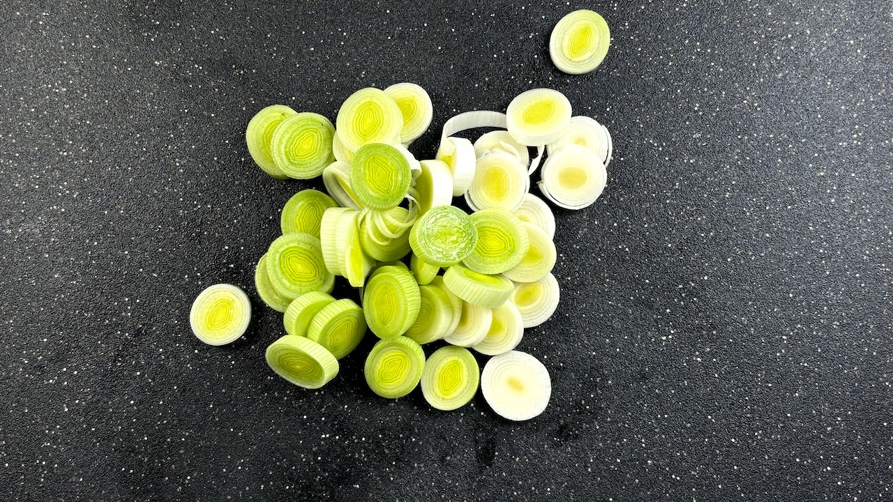 Clean the leeks thoroughly to remove any dirt, then slice them into thin rounds.