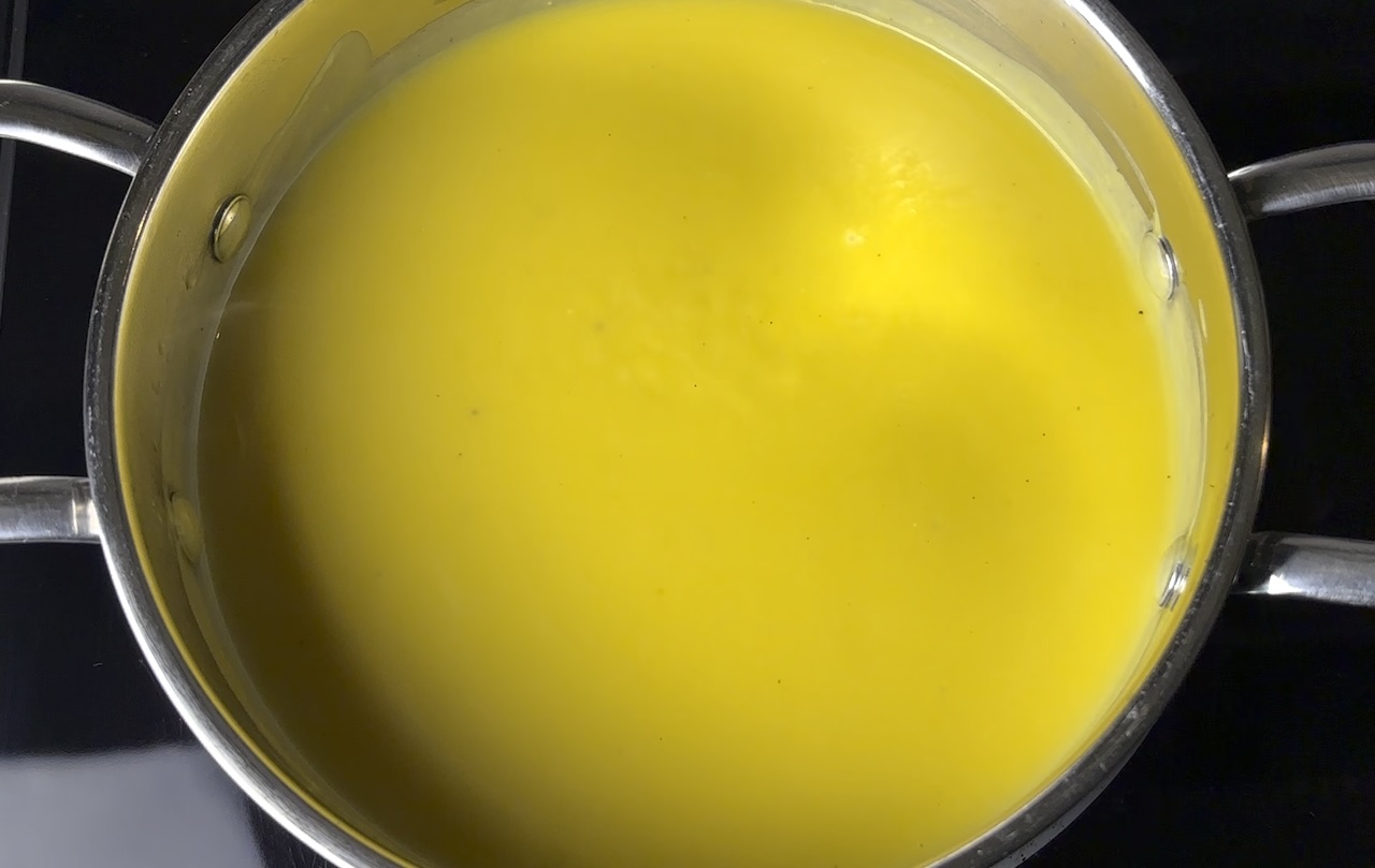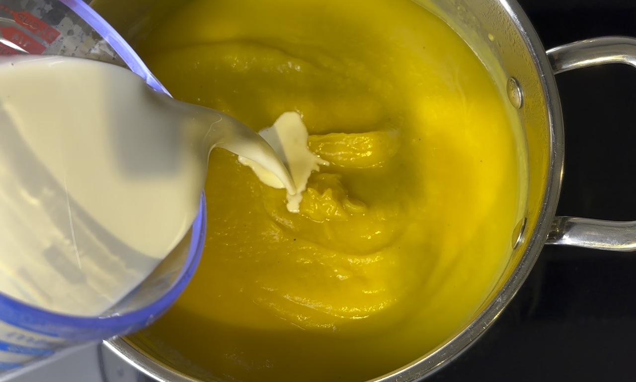 Once the squash is tender, use an immersion blender to purée the soup directly in the pot until it’s smooth and creamy.
