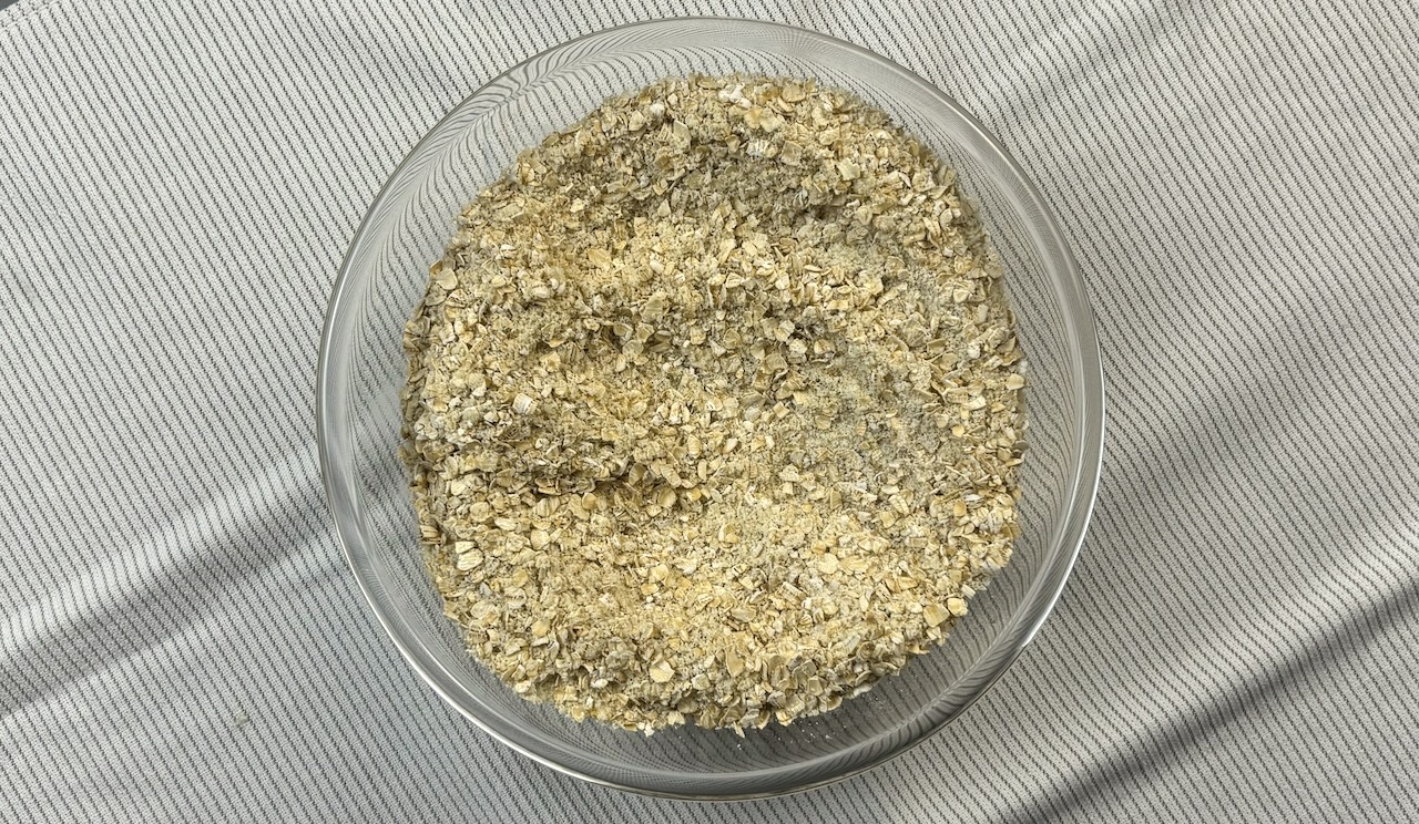 In a separate bowl, mix together the almond flour, quick oats, and baking powder.