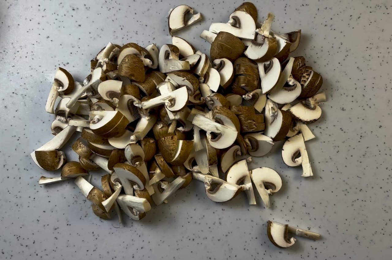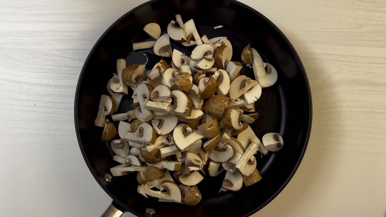 Heat 2 tablespoons of vegetable oil in a large skillet over medium heat. Add the sliced mushrooms, season with salt and pepper, and sauté for 7-10 minutes, or until they release their moisture and turn golden brown. Set aside.