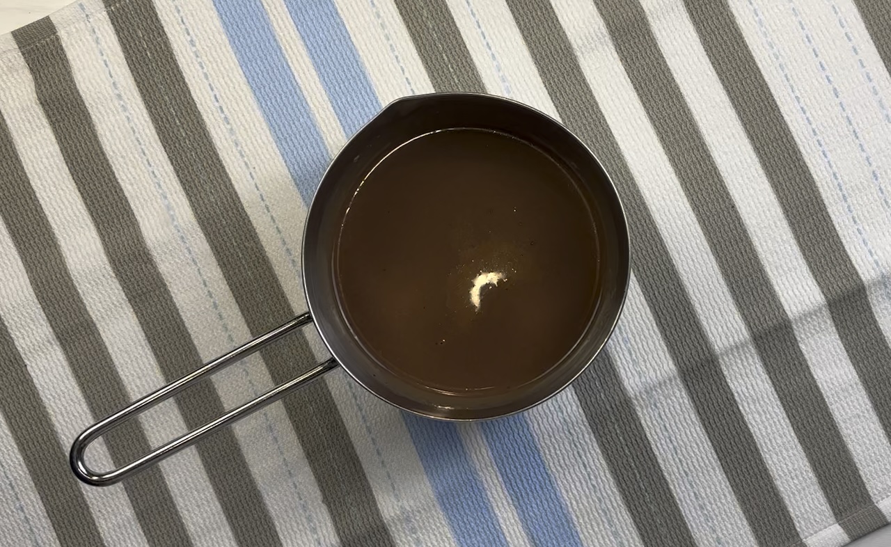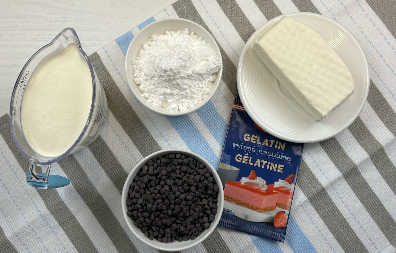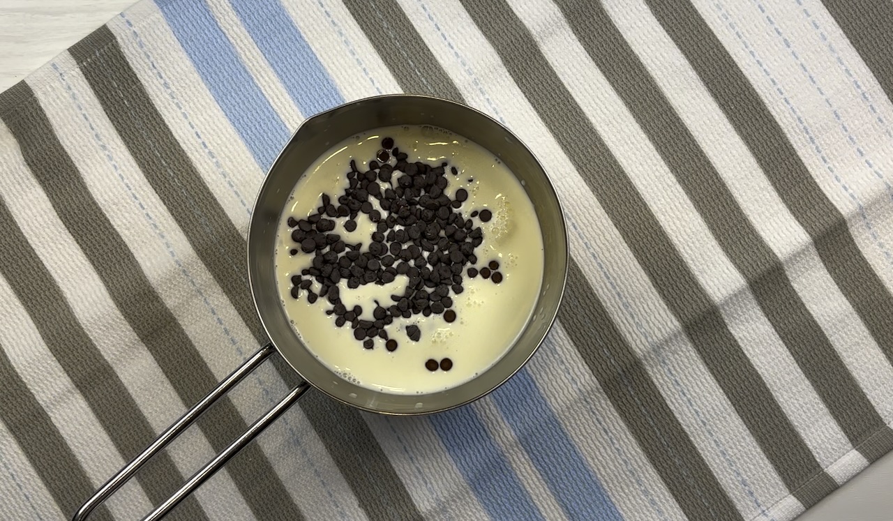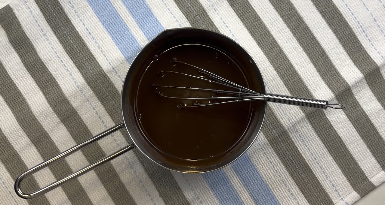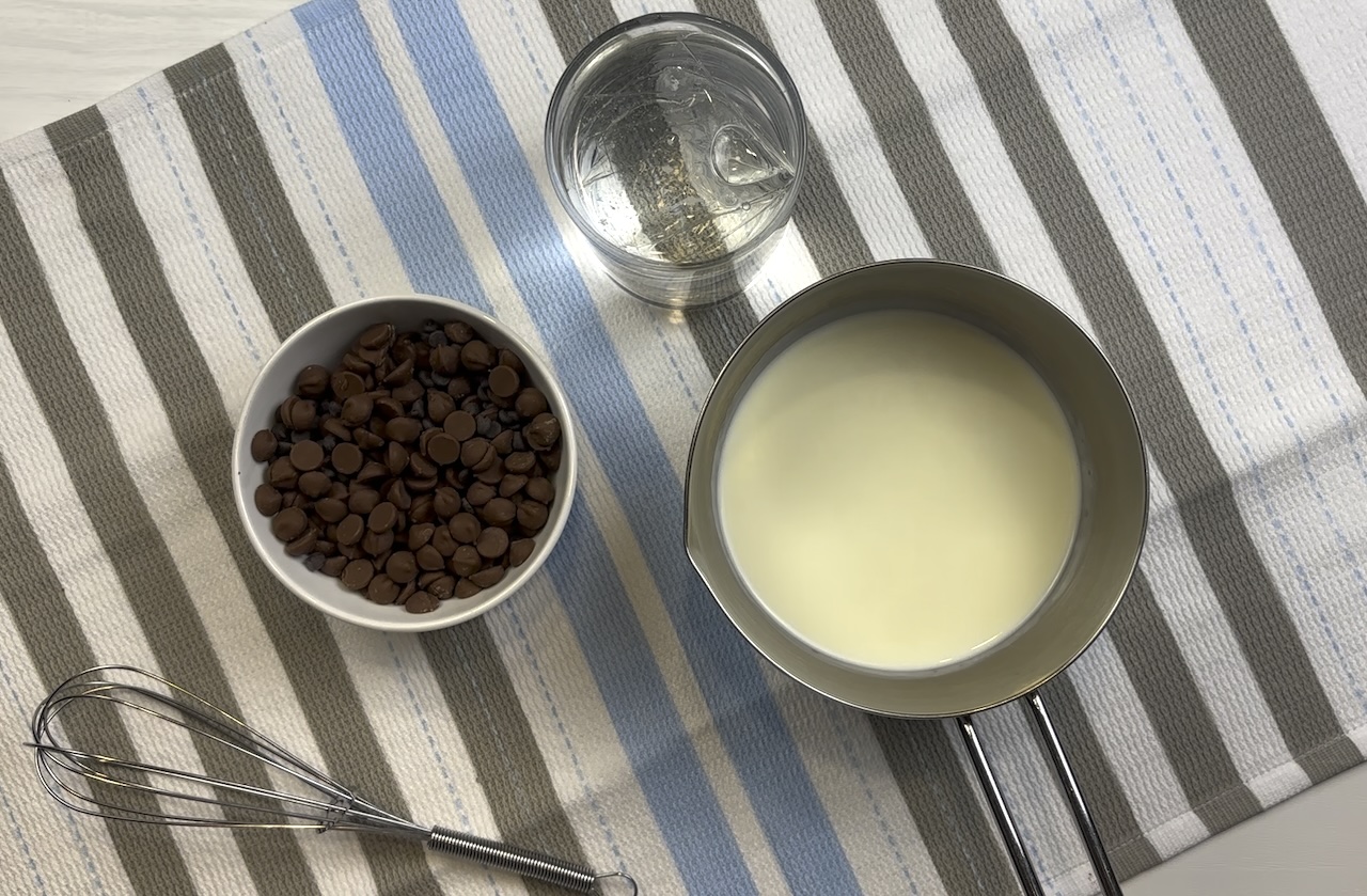 Heat ⅓ of the cream in a saucepan (do not boil), add chocolate, let sit for 3 minutes, then stir until smooth.