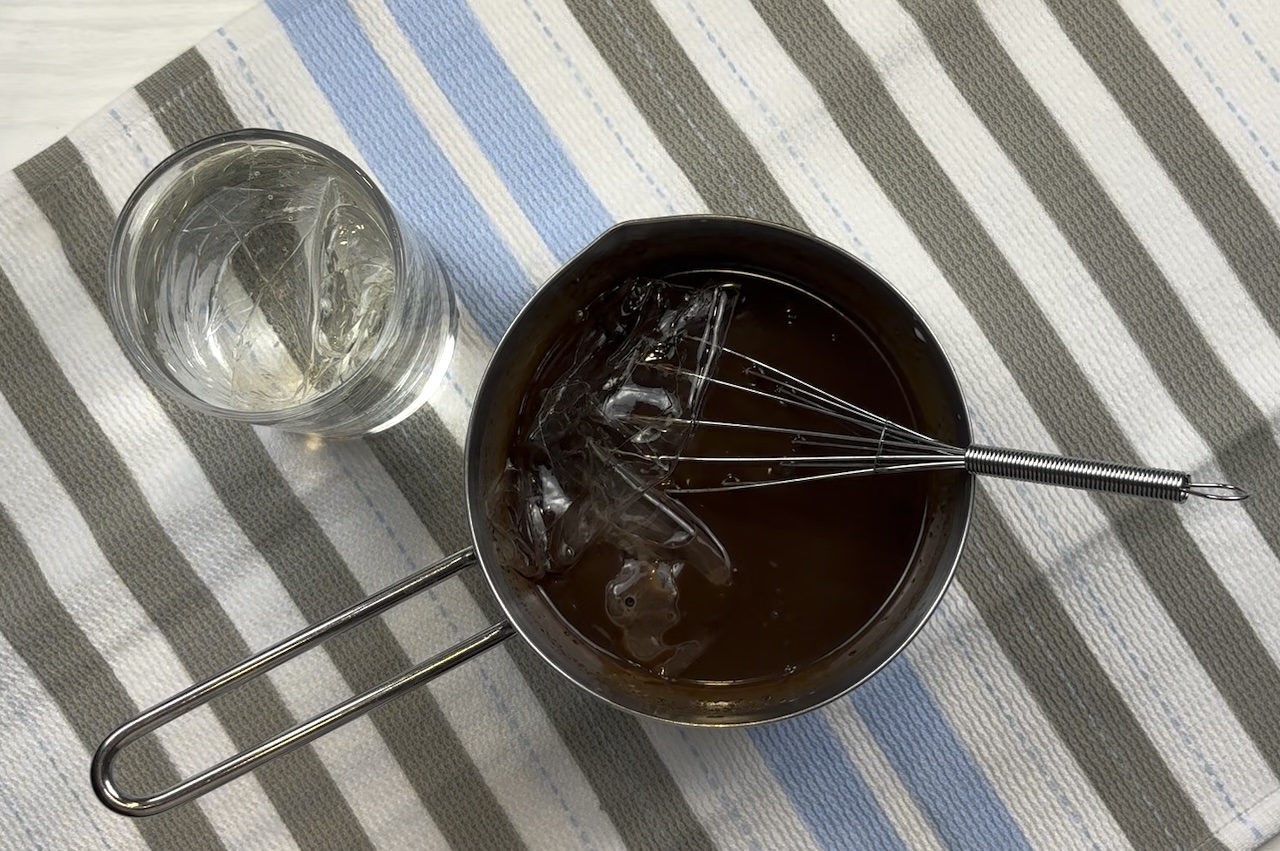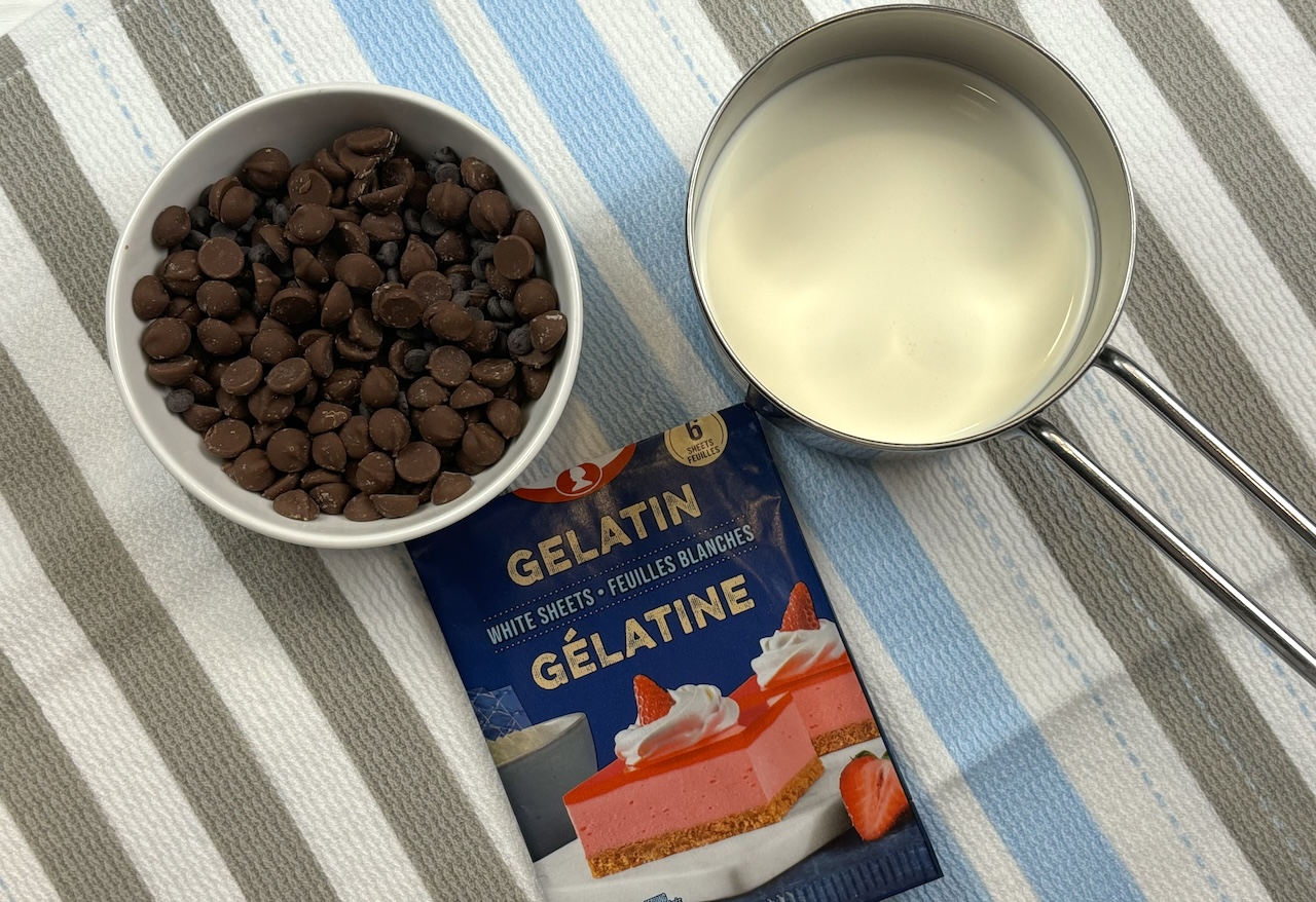 Stir the softened gelatin into the warm chocolate mixture until dissolved.