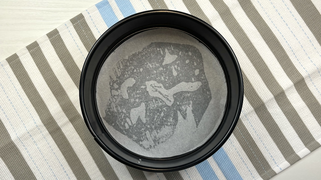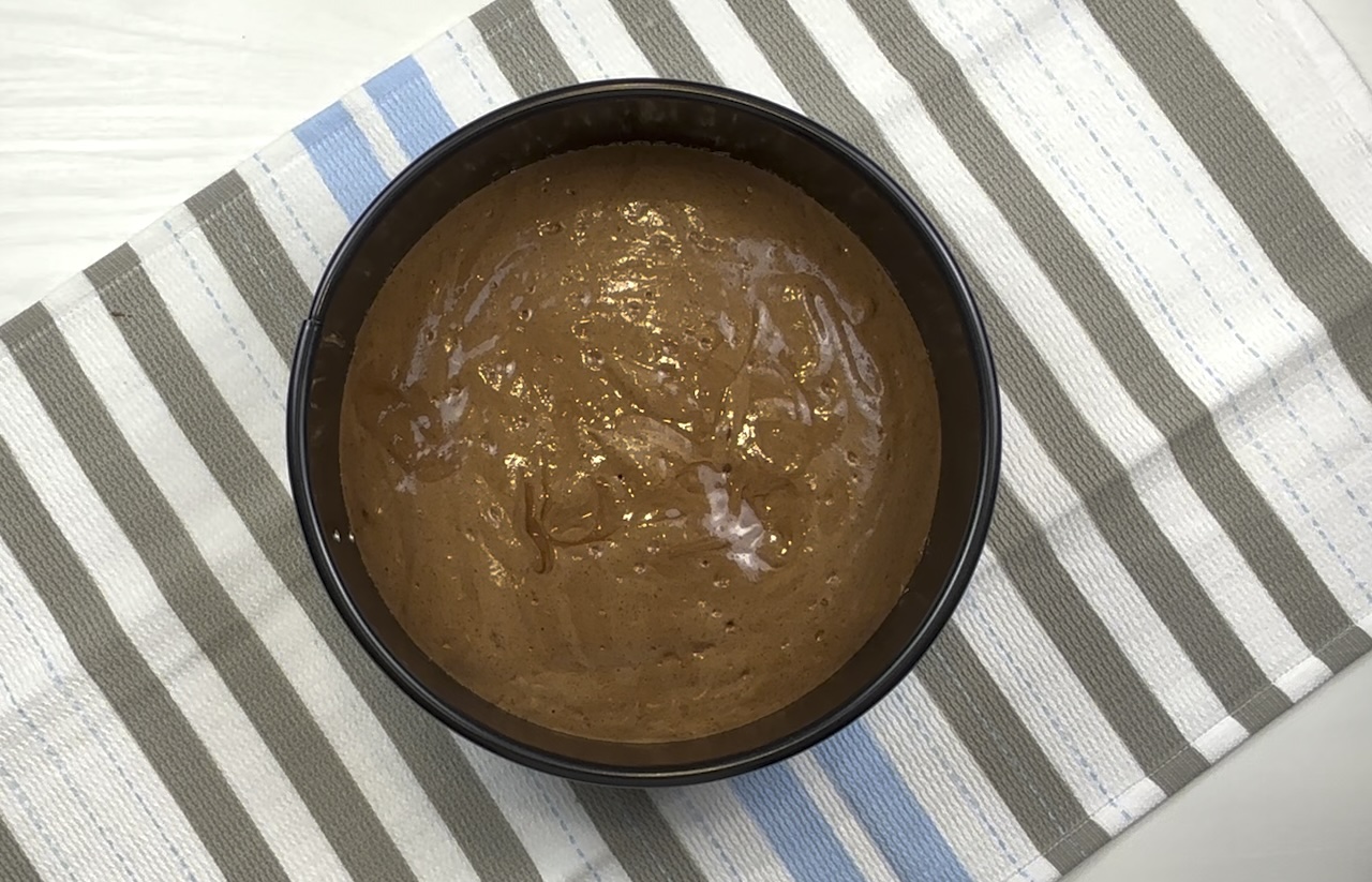 Preheat the oven to 350°F (175°C), line a 9-inch (23 cm) round cake pan with parchment paper, and grease the sides.