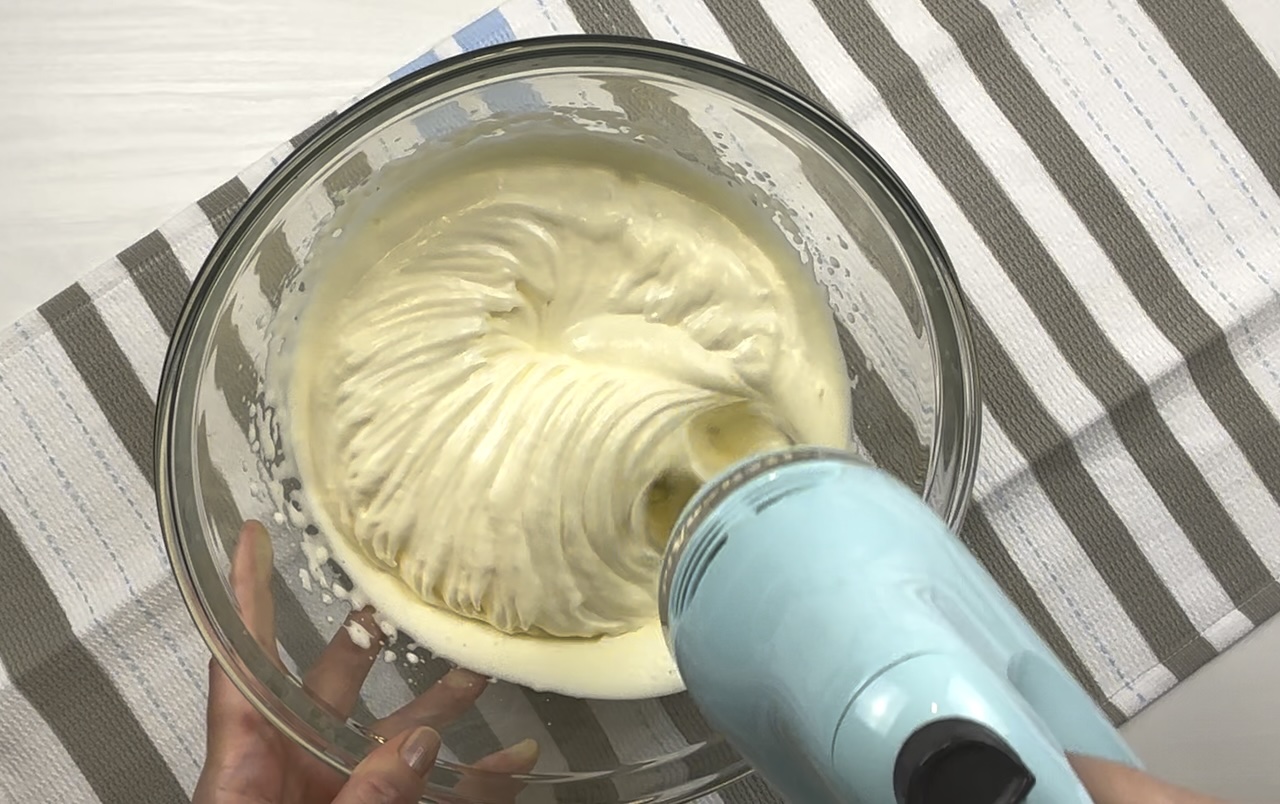 Fold in the dry ingredients carefully to avoid deflating the batter.