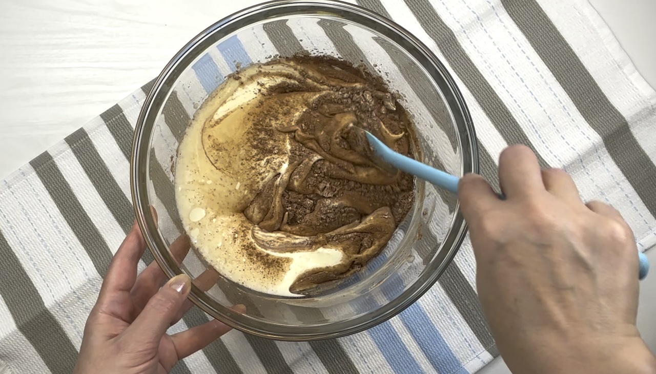 Mix the melted chocolate mixture into the cream cheese until well combined.
