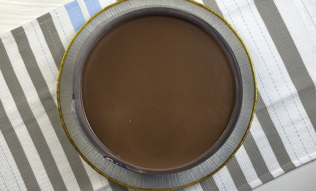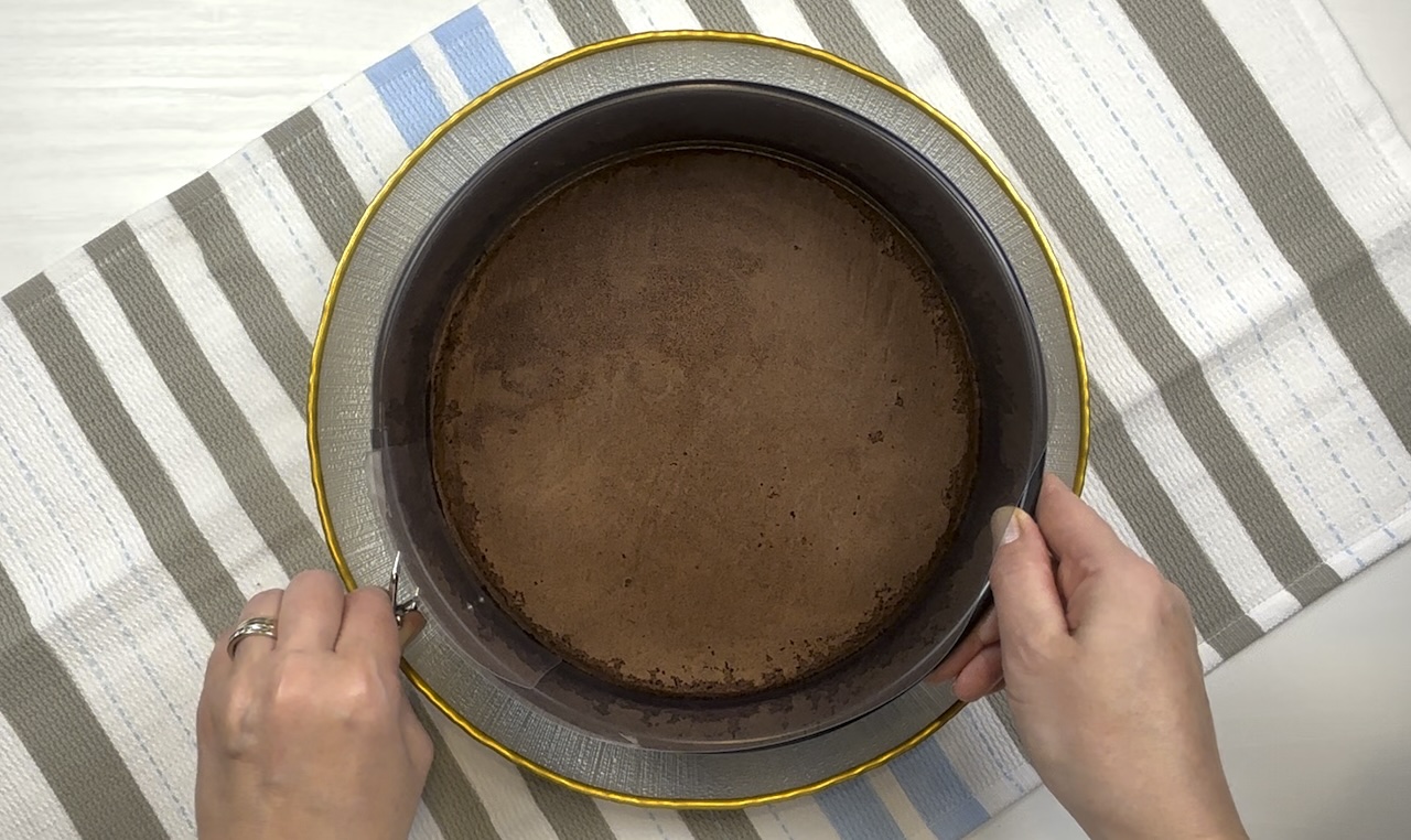 Place the cooled cake on a serving plate and surround it with a cake ring. Insert a cake collar inside the ring and lock it. (If you don’t have a collar, use parchment paper.)