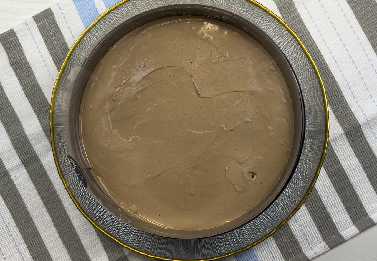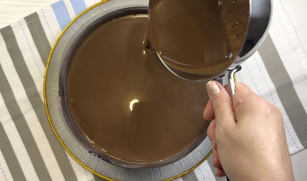 Spread the chocolate cream cheese mixture over the cake and smooth the top. Chill in the fridge for 30 minutes.