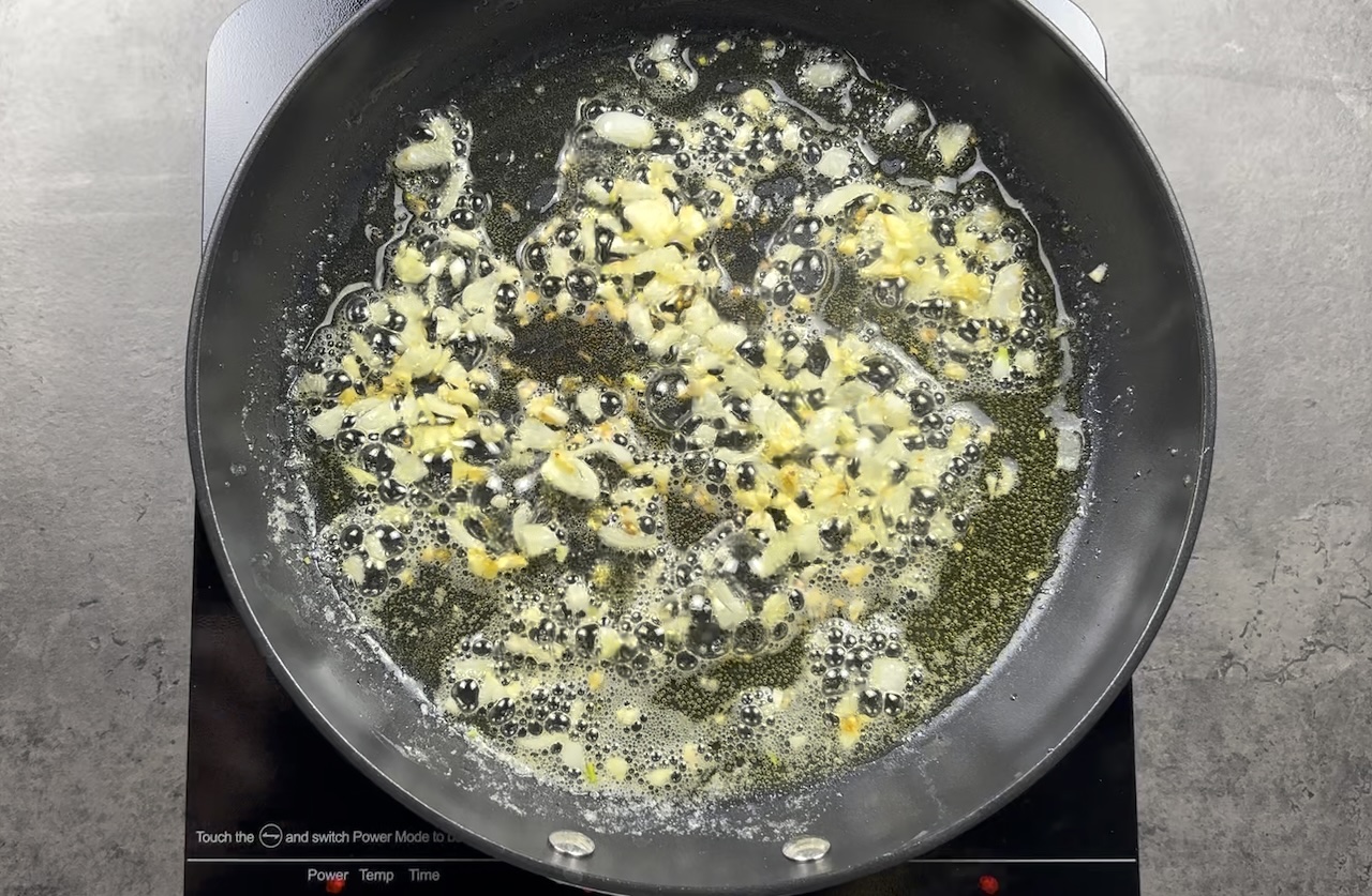 Start by preparing the sauce. Heat the butter and olive oil in a large skillet over medium heat. Add the chopped onion and minced garlic, and sauté for 3-4 minutes until softened and fragrant.