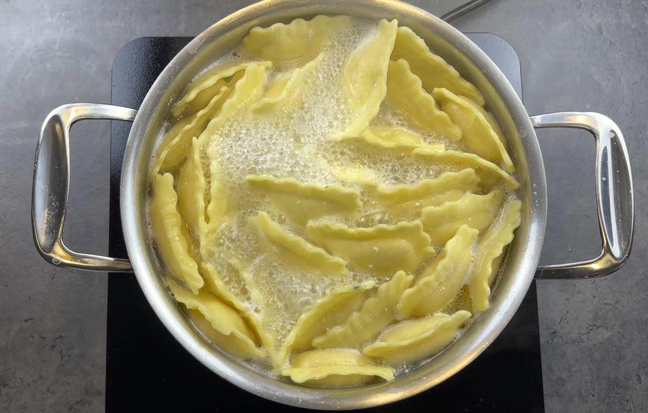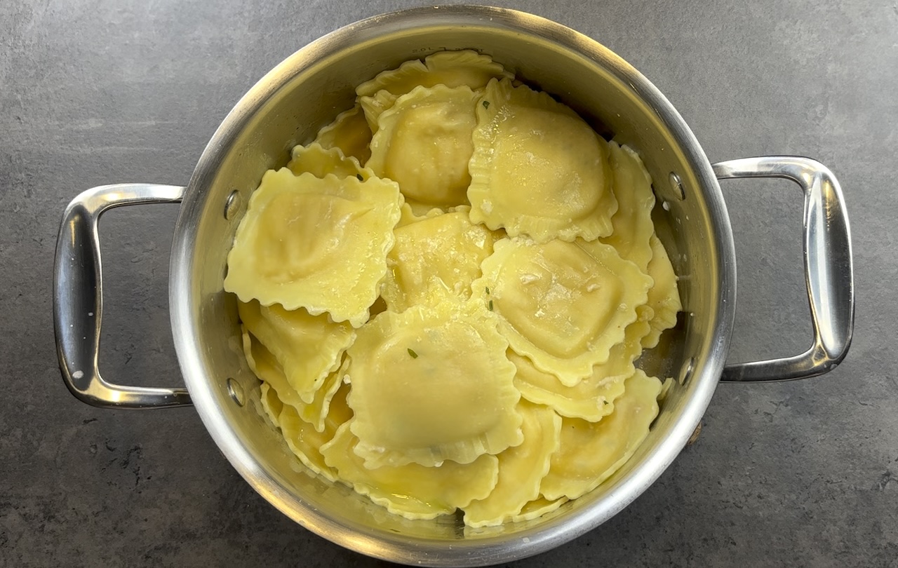 Meanwhile, bring the water to a boil in a large pot. Add the salt and cook the lobster tortellini according to the package instructions. Drain and set aside.