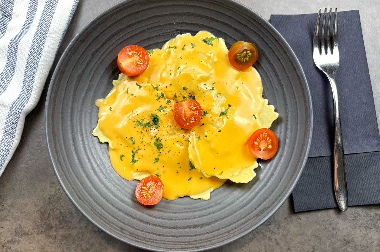 This Lobster Tortellini in Creamy Delicious Sauce is an indulgent, restaurant-quality dish that combines the delicate flavors of lobster-filled pasta with a luxurious, velvety sauce. The sauce, made with sweet cherry tomatoes, aromatic garlic, white wine, and rich cream, perfectly complements the tender tortellini, creating a harmony of fresh, savory, and creamy notes. Garnished with a touch of parsley and freshly ground black pepper, this dish is an elegant choice for special occasions or whenever you want to treat yourself to a truly gourmet experience.