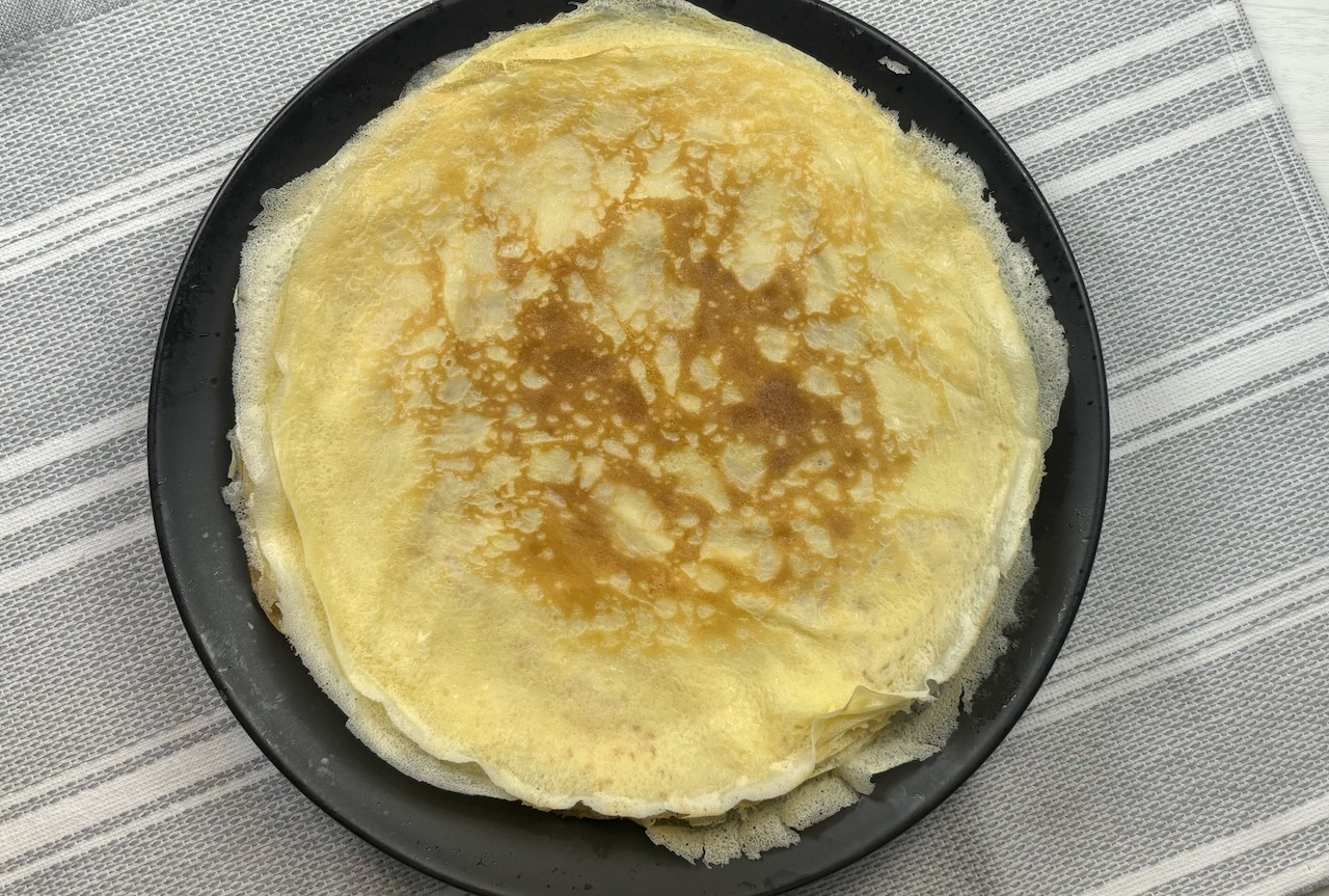 Continue the process with the remaining batter, stacking the cooked crepes on a plate as you go. If needed, lightly grease the pan between batches.