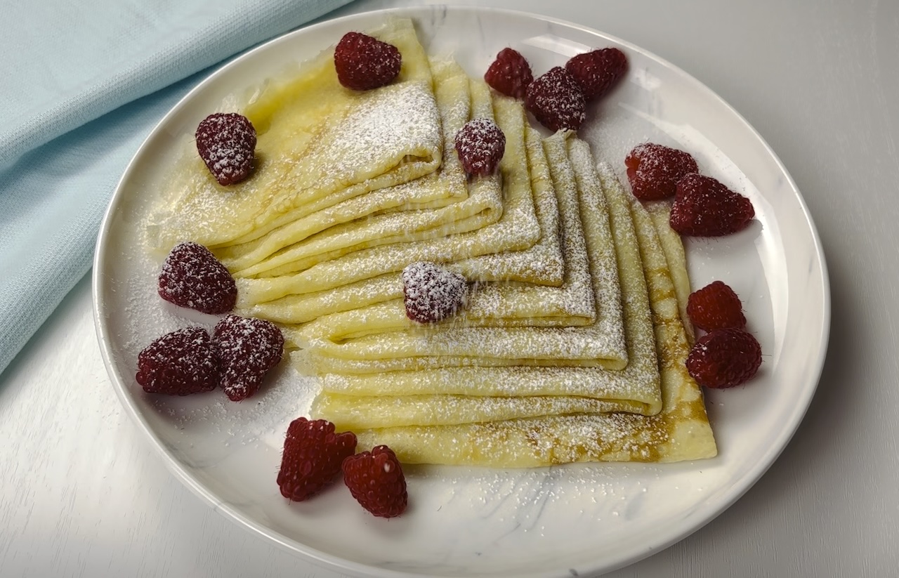 Once all crepes are cooked, serve immediately with your favorite fillings or toppings, such as fruit, whipped cream, Nutella, or syrup.