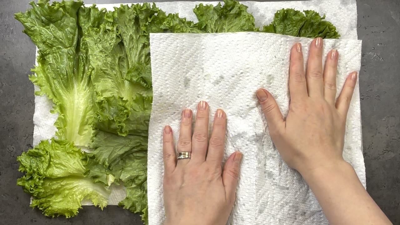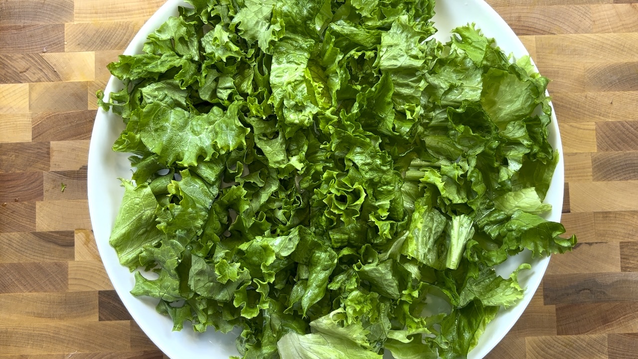 Wash the lettuce thoroughly and pat it dry with a paper towel. Cut it into bite-sized pieces.