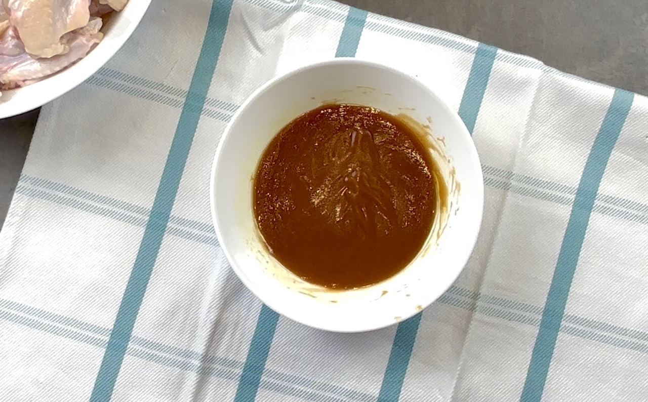 Pour the sauce over the wings and toss to coat evenly and leave to marinade for 15 minutes.