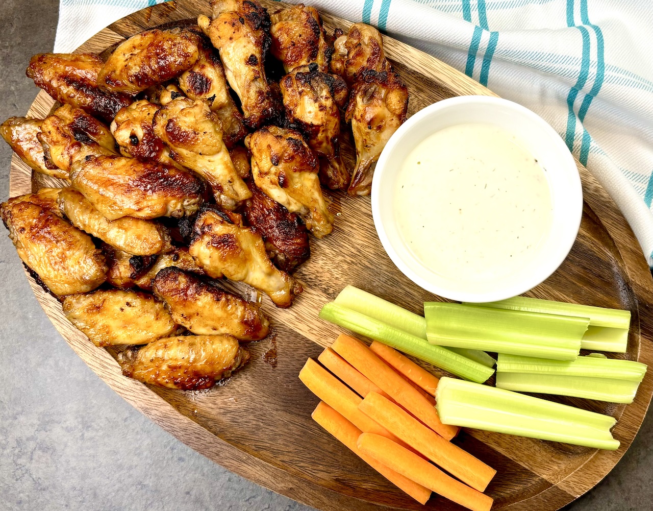 Once the wings are cooked, transfer them to a serving plate and serve with your favorite dipping sauces, celery sticks, or carrot sticks.