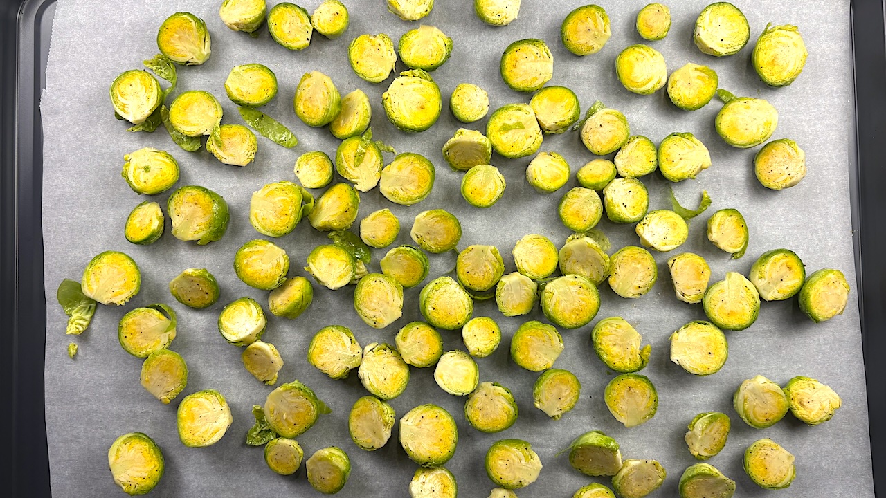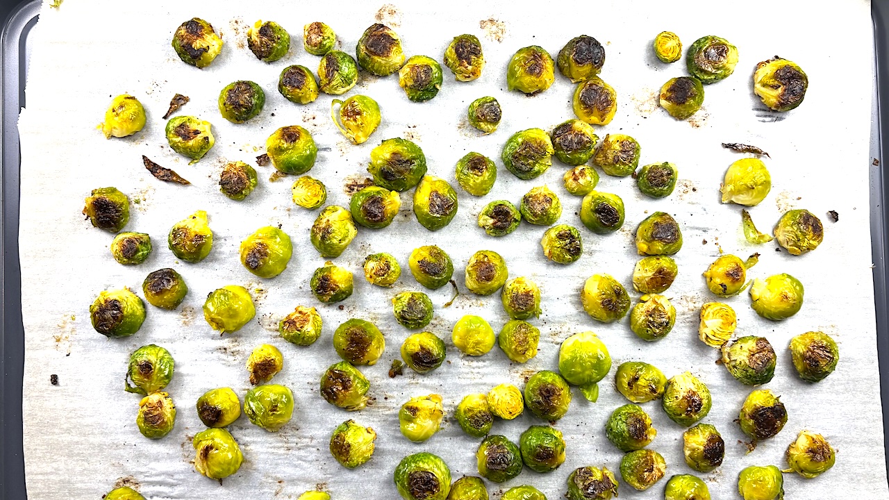 Spread the sprouts in a single layer on a baking sheet. Roast for 20 minutes, flipping halfway through, until they are crispy and caramelized.