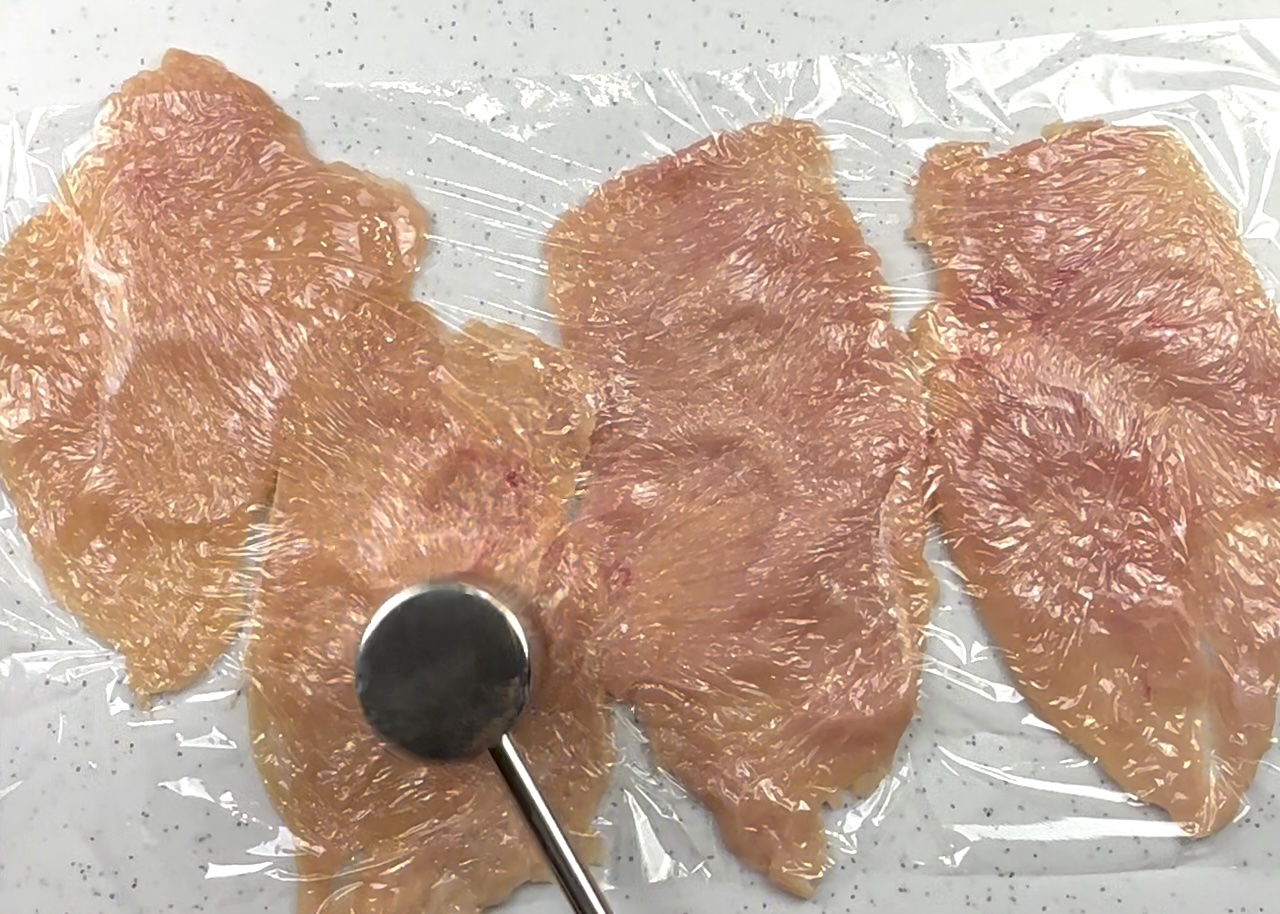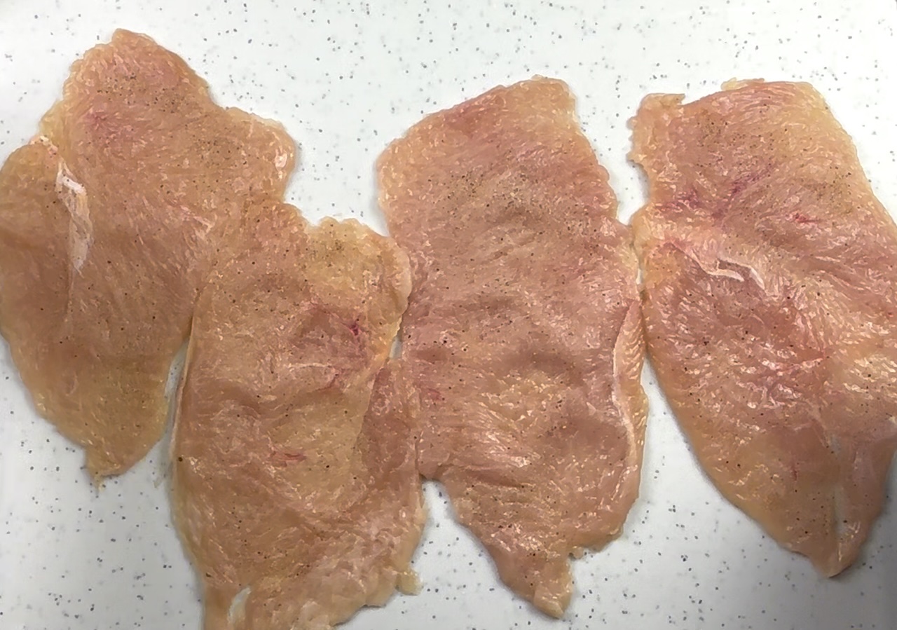 Clean and pat dry the chicken breasts. Slice them horizontally through the middle, cutting all the way through to create two even pieces. Gently pound with a meat mallet until evenly tender.