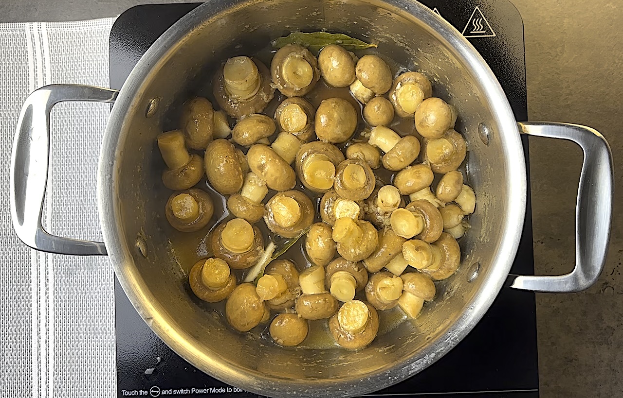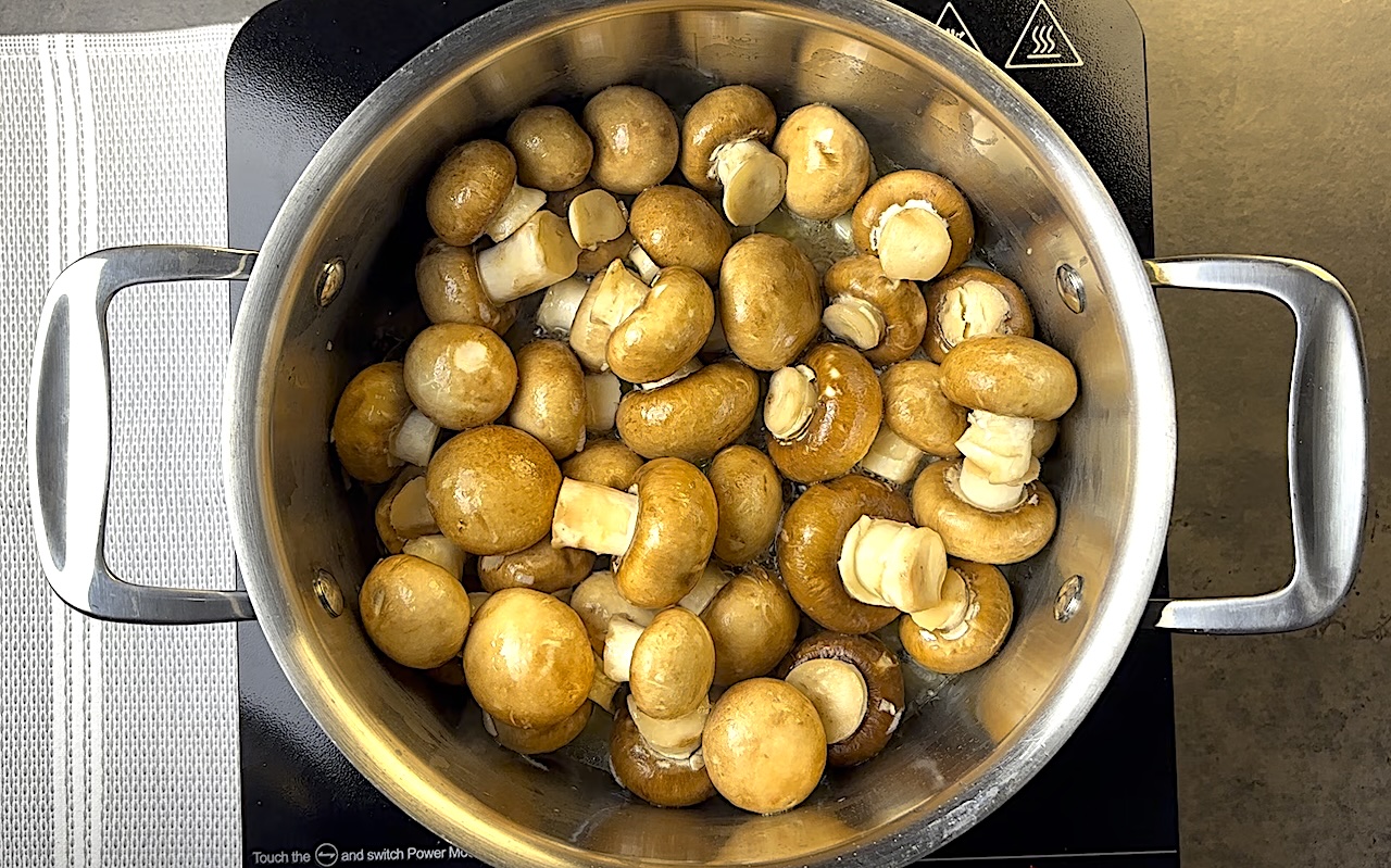 Once the liquid has come together, add the mushrooms and let them simmer for about 5 minutes to allow the flavors to meld together