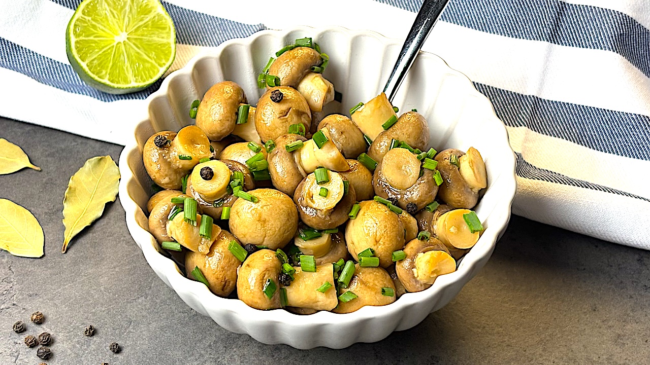 These Homemade Marinated Mushrooms are a tangy, savory snack packed with bold flavors from garlic, lime, and bay leaves. Simple to make and perfect for meal prep, they’re ideal for adding to salads, serving as a side, or enjoying on their own. A quick, flavorful treat that gets better with time!