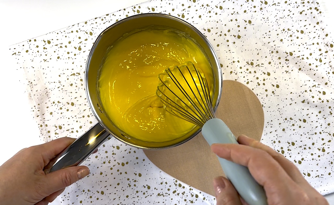 Return the mixture to the saucepan and cook over medium heat, whisking constantly until thickened into a custard-like consistency.