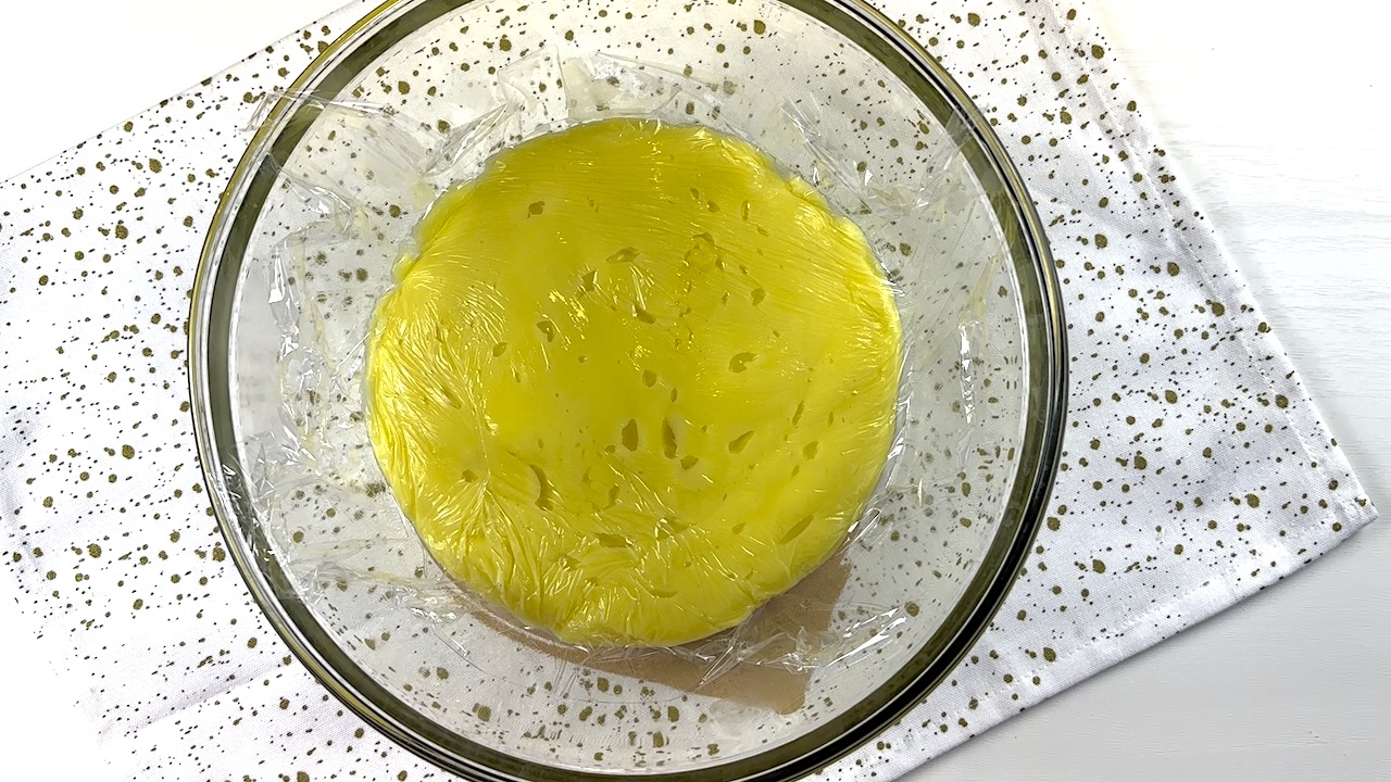 Remove from heat, transfer into a mixing ball, cover with plastic wrap and let it completely cool.