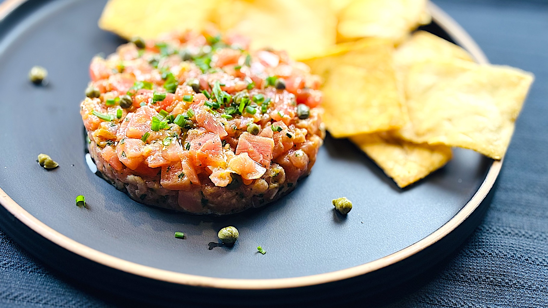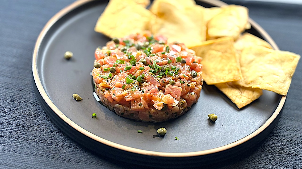 Plate the tartare using a ring mold for a refined presentation, or simply spoon it onto a serving dish. Garnish with extra chives and capers, if desired.