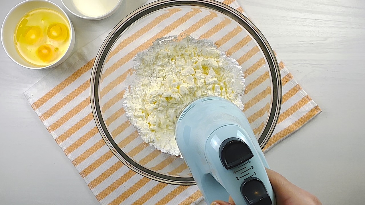 Add the eggs, one at a time, then pour in the heavy cream and pistachio extract. Mix until smooth and creamy.